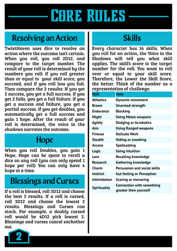 The core resolution mechanic uses a 2d12 roll where you compare both dice separately to your relevant skill score and count which ones are equal to or over. If 2 are equal to or over, its a full success. If only 1 is, its a partial success. And if neither are, its a failure.